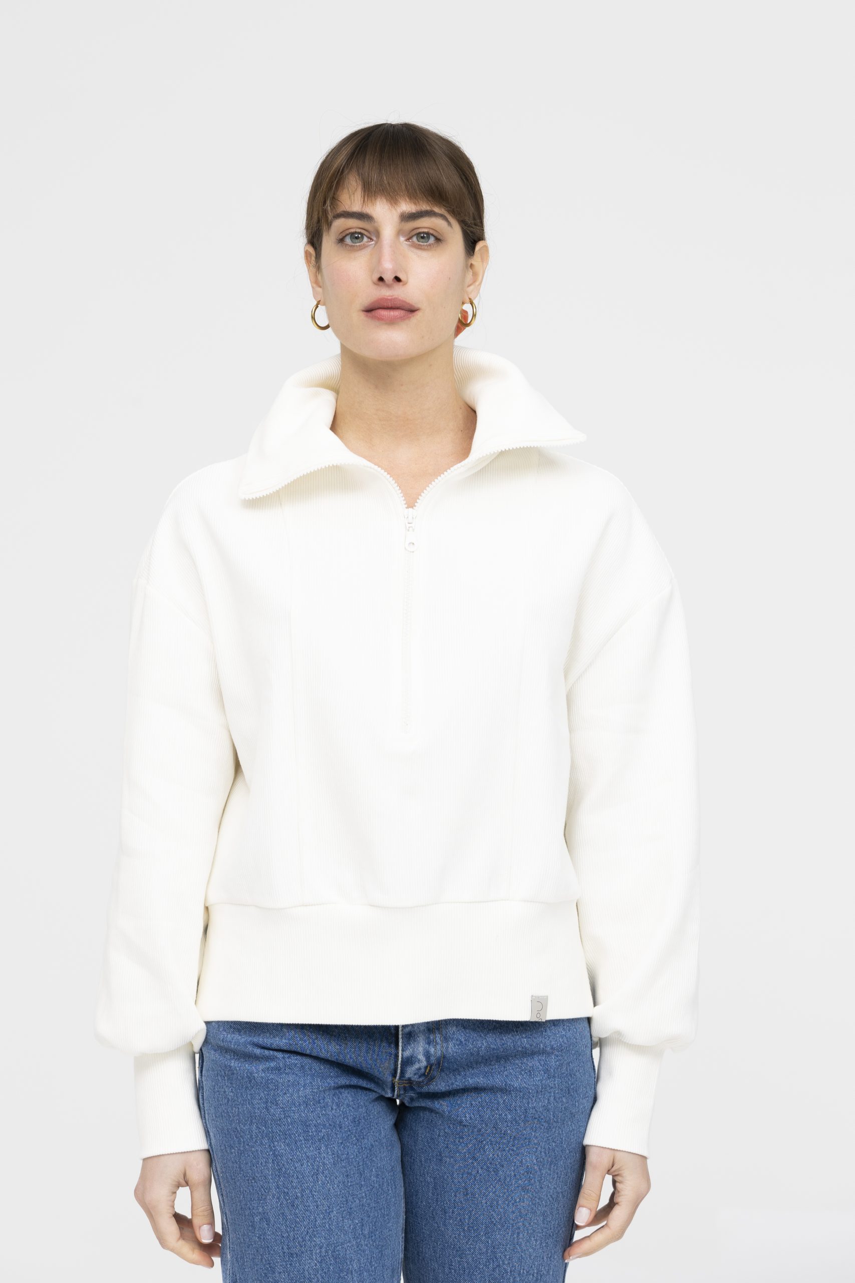 Φούτερ κοντό με φερμουάρ που ξεκινάει από τη μέση της μπλουζας και κλείνει ψηλά στο λαιμό. Είναι ραμμένο με πολλά διαφορετικά