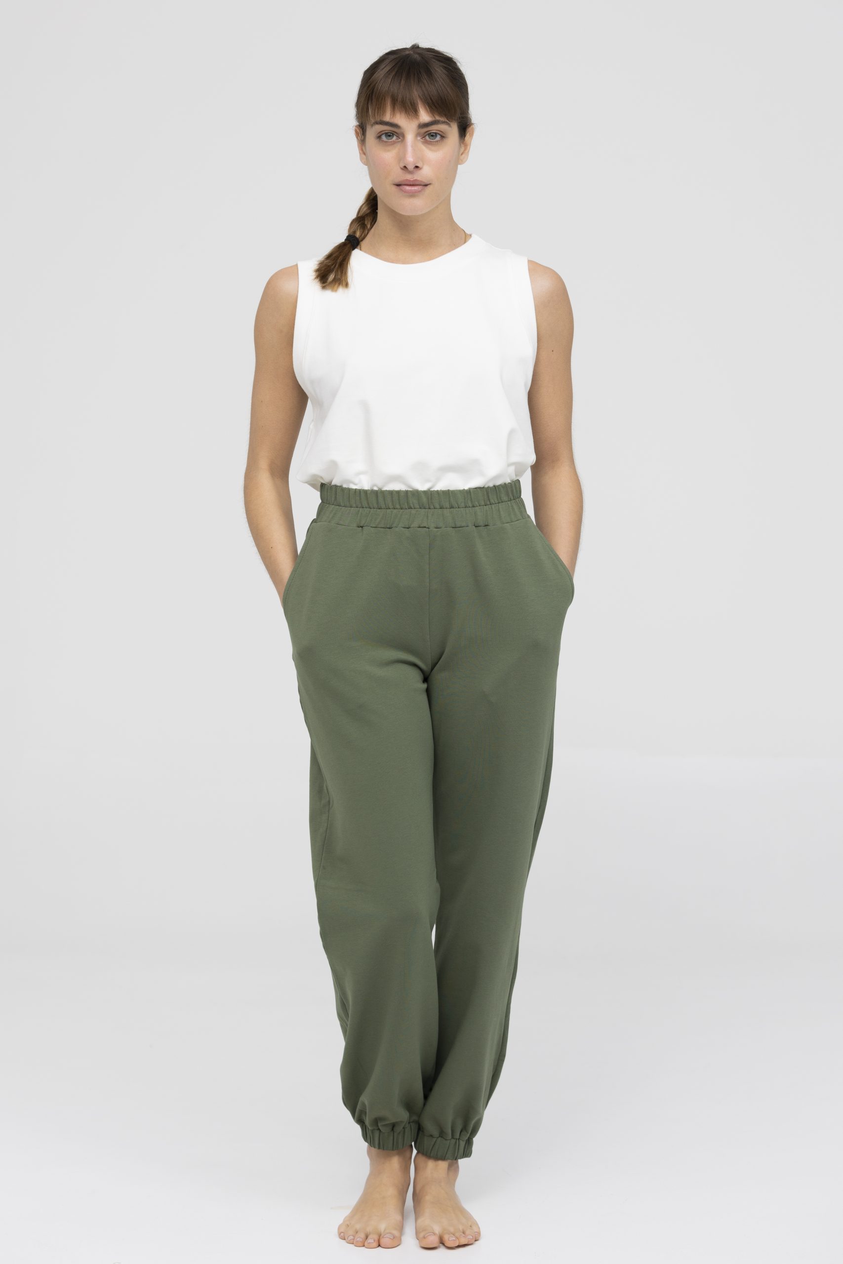 Παντελόνι με τσέπες σε άνετη γραμμή με λάστιχο στους αστραγάλους. Βαμβακερό κατά 95% αποτελεί εύκολη λύση για ασκήσεις στο πιλάτες τη yoga αλλά και όλες τις δραστηριότητες μέσα στην ημέρα. Απόλυτος εκφραστής του athlesuire style συνδυάζεται με πολλούς τρόπους.
