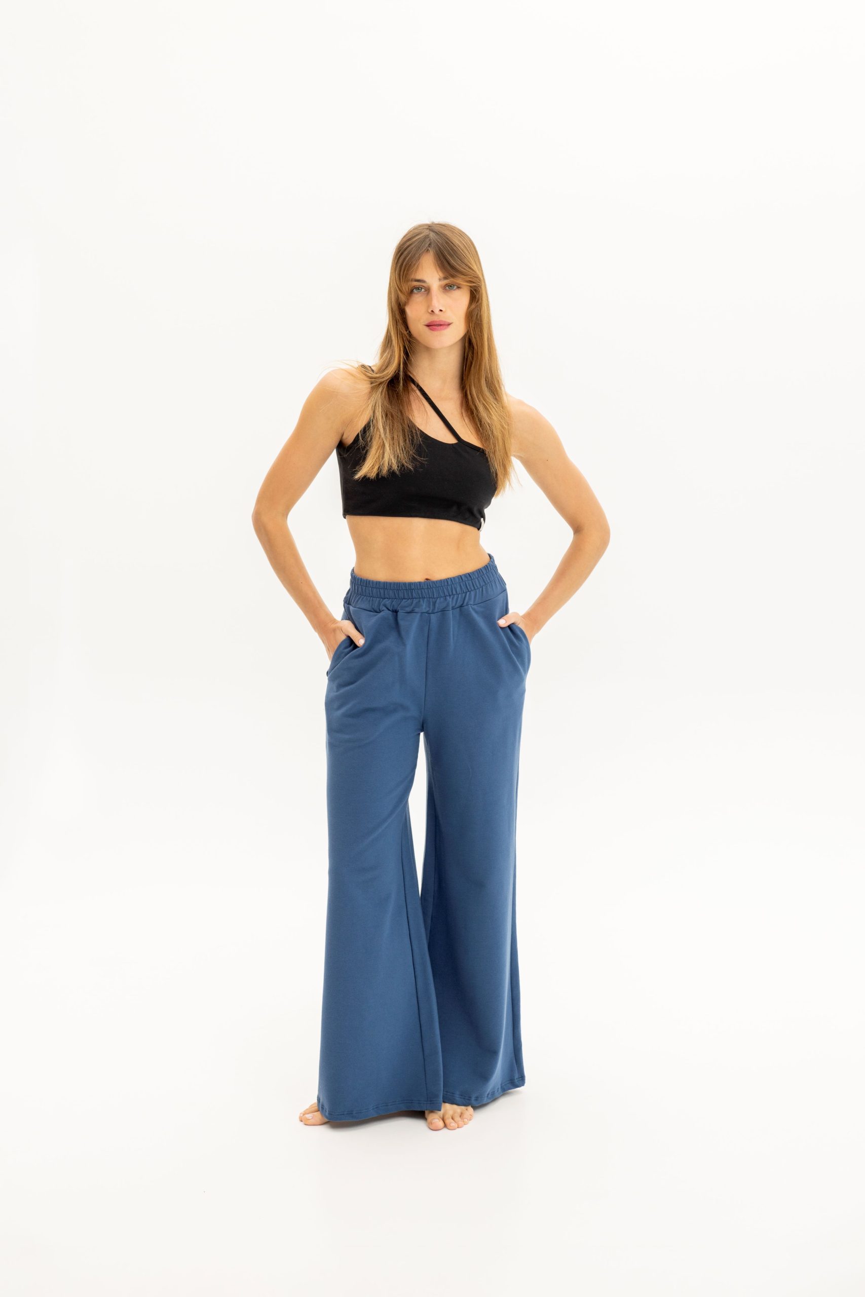 Παντελόνι ψηλό μέσο σε φαρδιά γραμμή από απαλό ύφασμα cotton 95% .Συνδυάζεται με τοπς και φανελάκια σε στενή γραμμή.